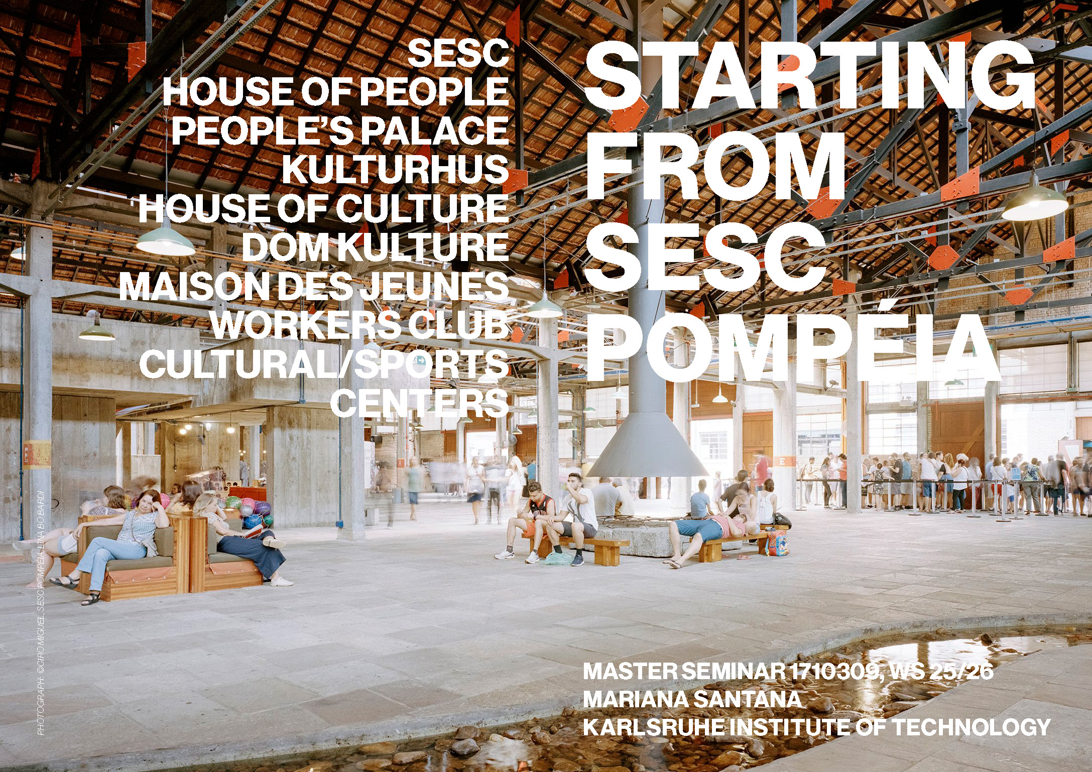 In 1977, Lina Bo Bardi began turning an old metal factory into SESC Pompéia—a typology for leisure, culture, and community well-being. Today, SESC has 600+ units across Brazil; its singular institutional model helps explain this reach, but not alone. The seminar aims to explore the influences that led to the creation of SESC Pompéia, its impact on subsequent SESC buildings, the architect's role, and the ongoing expansion of SESC Pompeia's global influence as a leading architectural reference. We will map parallels with “Workers Clubs,” “Maisons du Peuple”, “Dom Kulture”,“Kulturhus”. Framing architecture as an expanded, networked practice, our methodology expands from understanding singular projects within broader political, temporal, and typological constellations. We will develop tools for architectural research that embrace multiplicity—questioning not merely what buildings are, but how they evolve, who inhabits them, and why some endure while others fail.